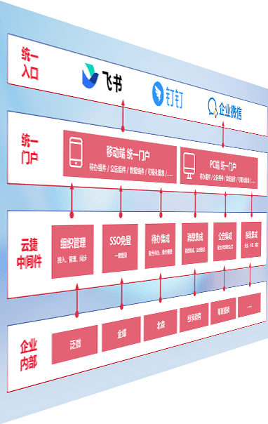 对协作平台提供支持服务,,,支持企业应用与协作平台对接,,包含组织同步、、消息集成、、、待办集成等。。。。支持目前主流的协作平台:钉钉、、、、企微和飞书。。